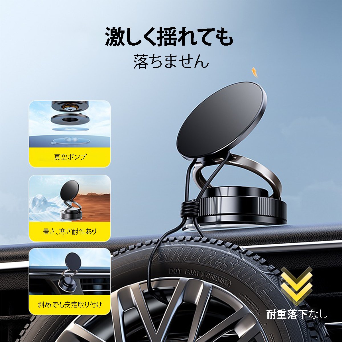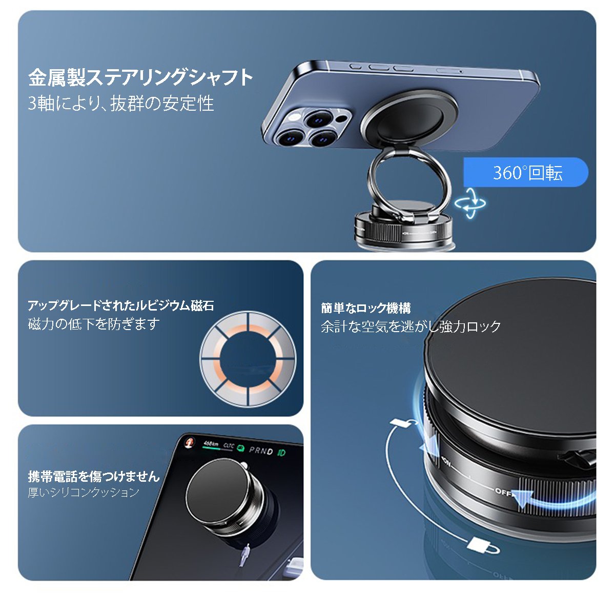 A compact and powerful 360° Rotation Vacuum Magnetic Phone Holder designed for effortless one-handed operation. Its foldable and adjustable build makes it perfect for car, home, or office use, keeping your device secure and within easy reach.